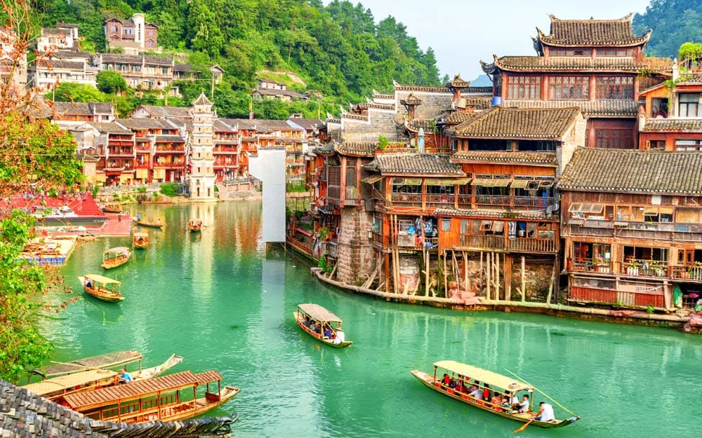- 【鳳凰古城】中國最美麗的小城之一,觀沱江夜景、吊腳樓群。