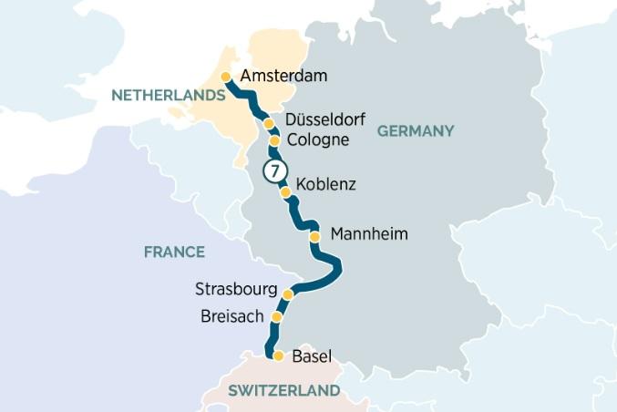 Day 1 巴塞爾, 瑞士。船公司安排接送前往碼頭 (建議15:00前抵達) 登船