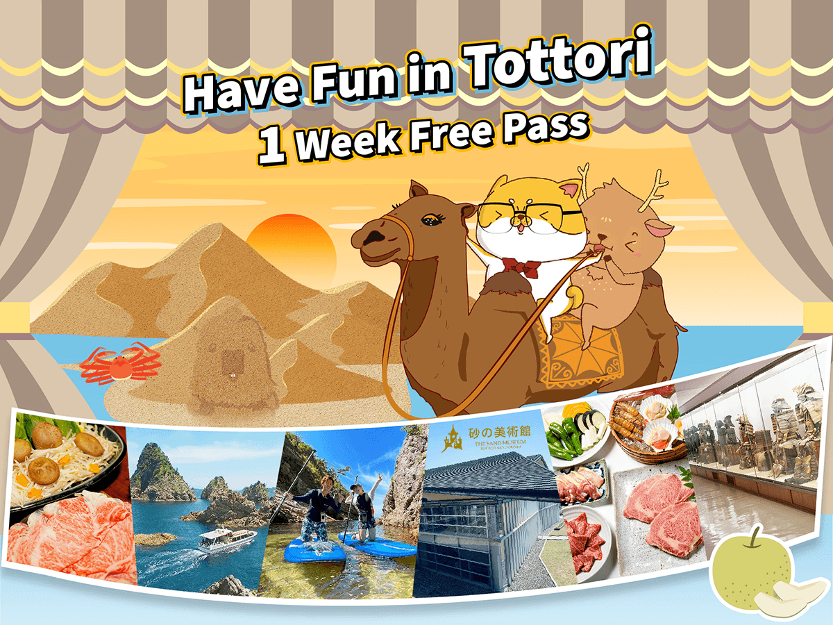 暢遊鳥取必備的景點套票,精選多個人氣設施與美食店家,一週內可以任選三個喜歡的設施,出示電子票券QR code就可以輕鬆入場體驗。