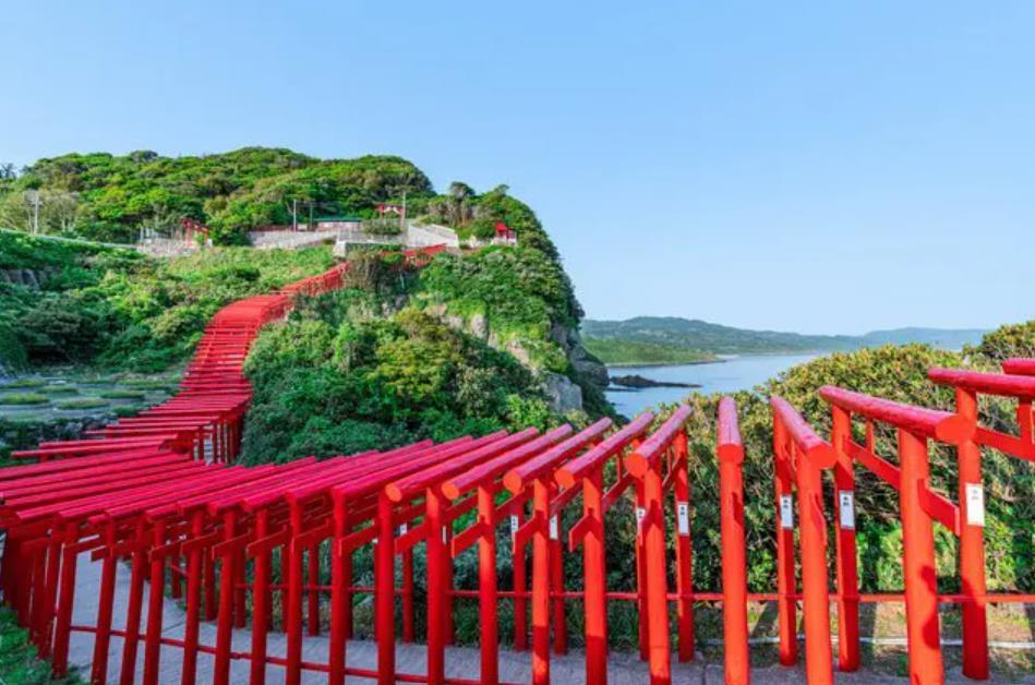 元乃隅稻成神社曾被CNN評選為日本最美的地方之一。位於山口縣長門市的元乃隅稻成神社,有著一條綿延不絕的鳥居隧道,這123個紅色鳥居沿著山坡一路延伸到斷崖邊,和藍天綠地以及蔚藍的海洋形成一幅美不勝收的景觀,相當壯麗。