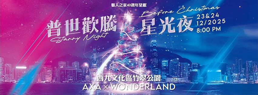 今年,在迎接平安夜和聖誕前夕,於香港著名地標 西九文化區 竹翠公園 AXA x Wonderland,超過20個演出單位以歌聲頌揚,來自香港及世界各地的觀眾,朝著這個閃亮地標聚首一堂,經歷一場集「信」、「望」、「愛」奇妙旅程!