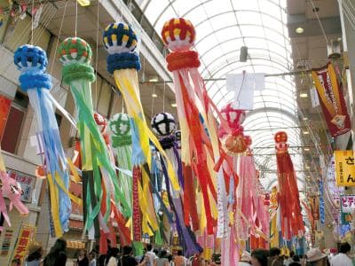 到處懸掛著各種手工製作,高達10公尺以上的豪華七夕裝飾慶典。